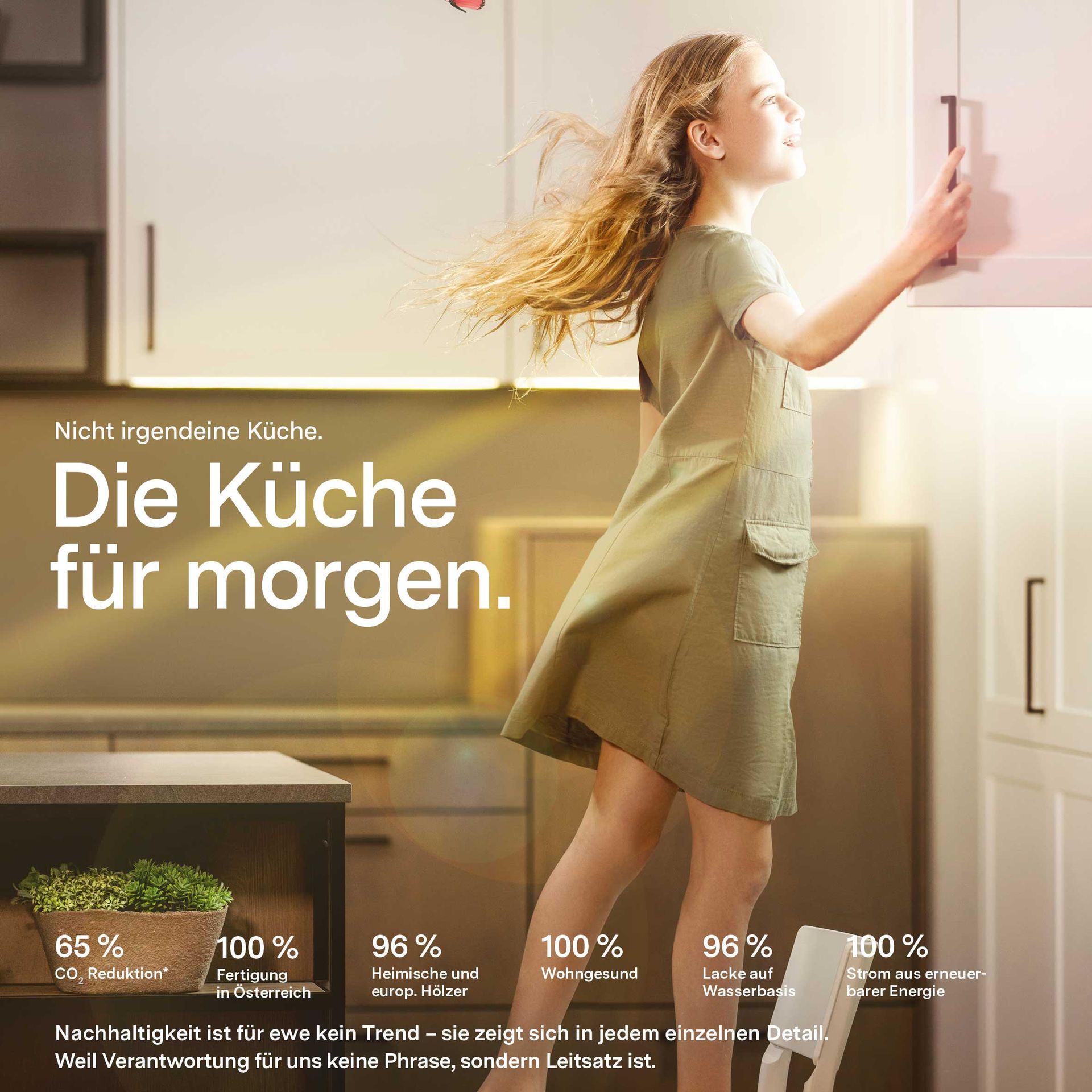 Für Sie heißt das: Wenn Sie sich für eine Küche von ewe entscheiden, wählen Sie nicht nur erstklassige Qualität, durchdachtes Design und lange Lebensdauer – sondern leisten auch einen bewussten Beitrag zum Schutz unserer Umwelt.