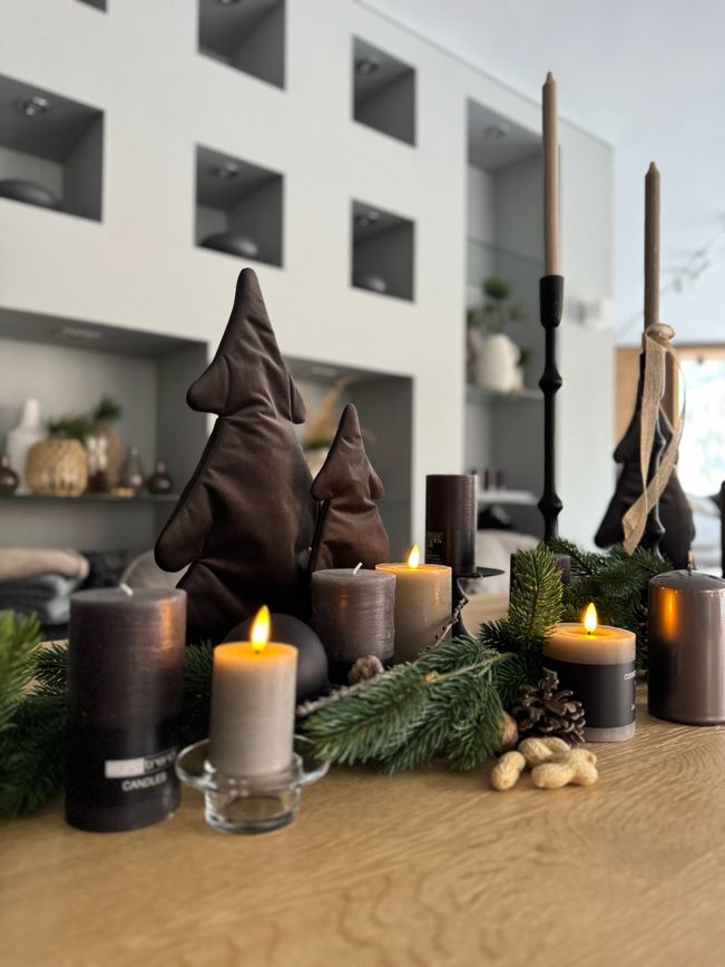 Warm flackerndes Kerzenlicht, weiche Texturen, der Duft von Weihrauch, frisch gebackenen Keksen oder würzigem Tee – all das verwandelt Ihr Zuhause in eine Oase der Ruhe inmitten der Vorweihnachtszeit.