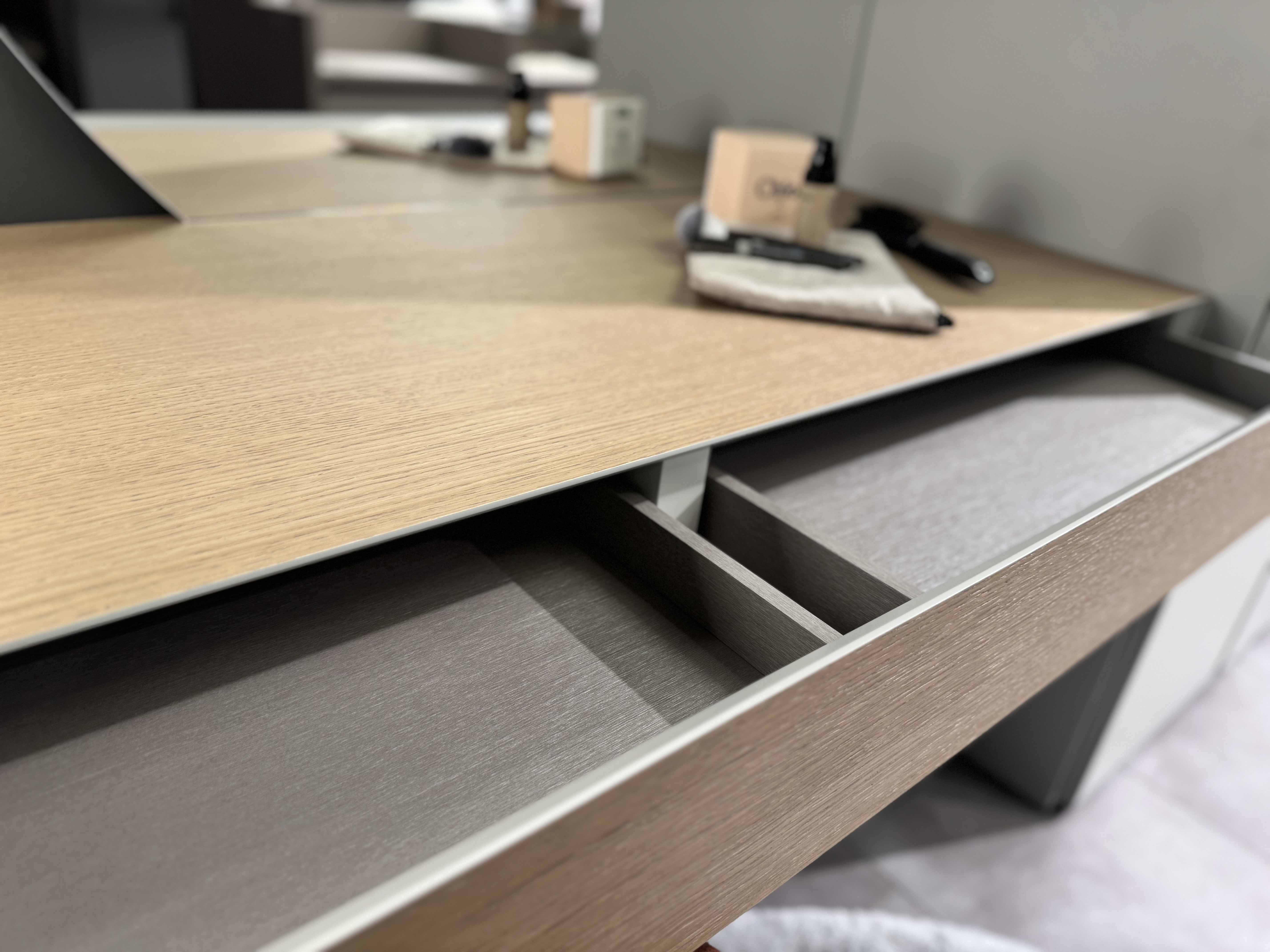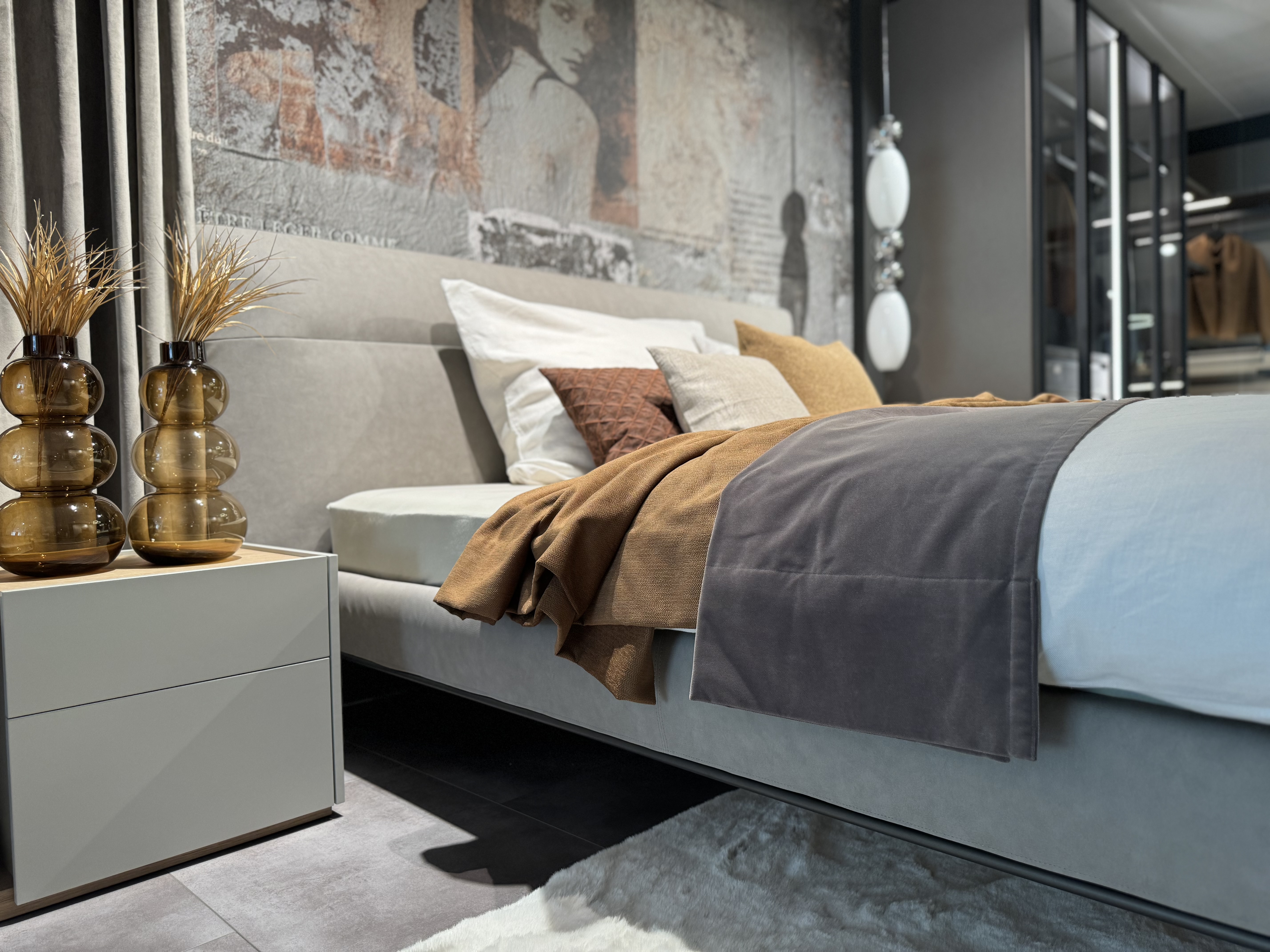 Beige, warmes Terracotta und Greige dominieren in unserer neuen Schlafzimmerabteilung und bringen mit dem Materialmix italienisches Flair in unseren Schauraum. San Giacomo ist ein renommierter Hersteller hochwertiger Möbel aus Italien. Die neue Kollektion verkörpert ein einzigartiges Zusammenspiel aus zeitloser Eleganz und modernem Komfort. Sie bietet eine vielfältige Auswahl an Betten, Nachttischchen, Schränken und Kommoden, die sorgfältig gestaltet wurden, um höchsten Ansprüchen an Qualität und Design gerecht zu werden. Jedes Stück zeichnet sich durch handwerkliches Können, feinste Materialien und innovative Details aus, die ein exklusives und gleichzeitig funktionales Ambiente schaffen.