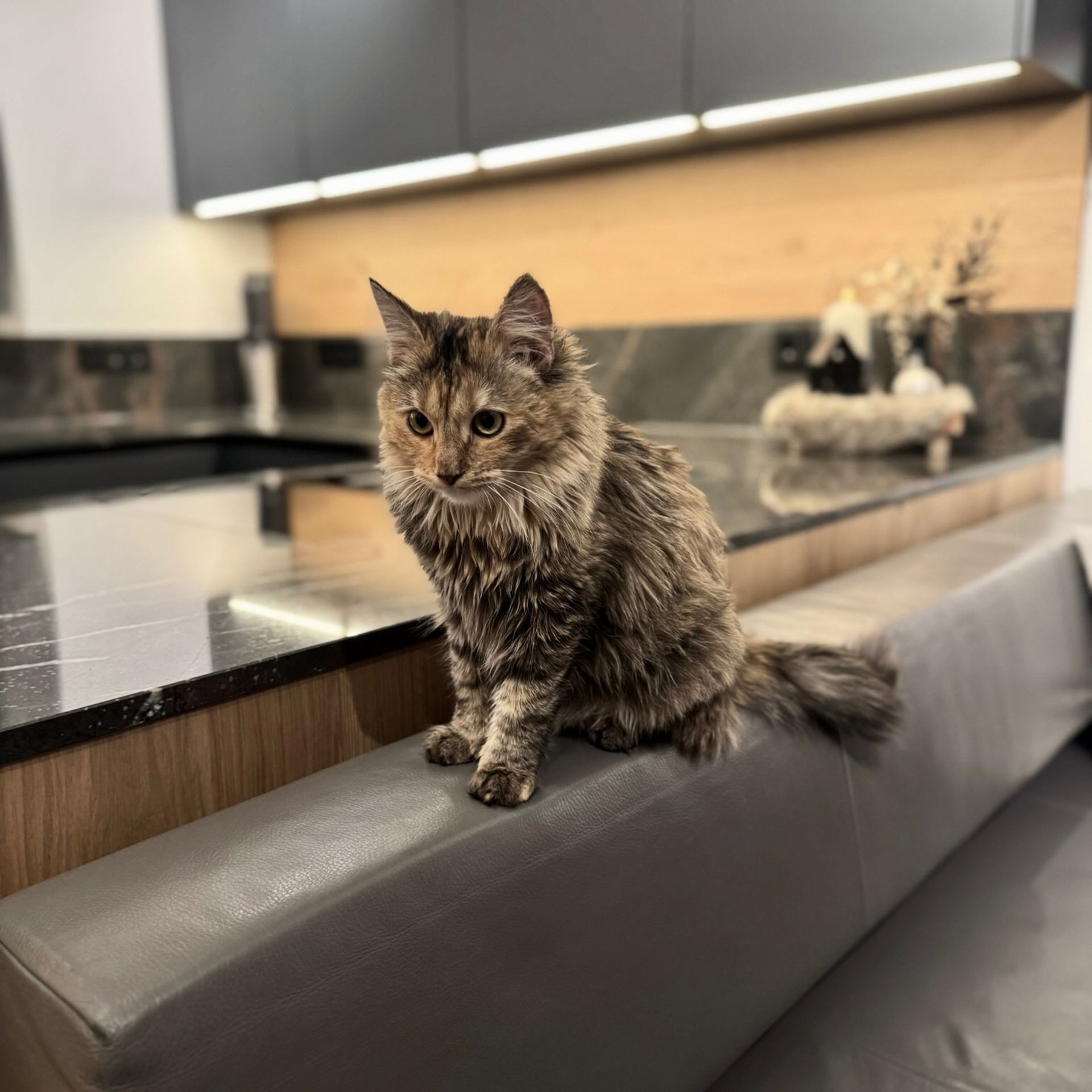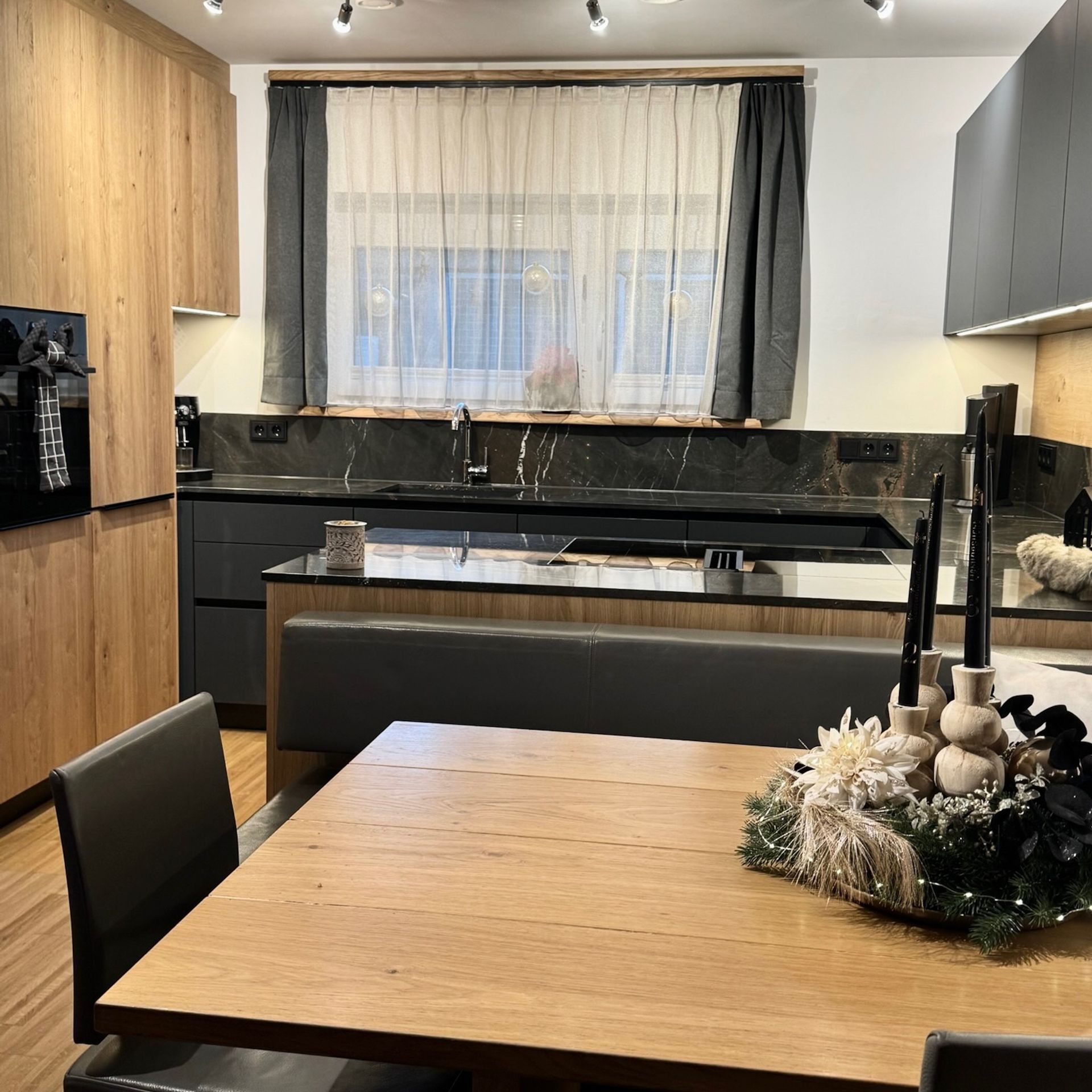 Durch die sorgfältige Planung und die abgestimmte Material- und Farbauswahl entstand eine Familienküche, die Design, Technik und Wohnqualität vereint – ein Raum, in dem sich alle wohlfühlen - auch das süße Samtpfötchen.
