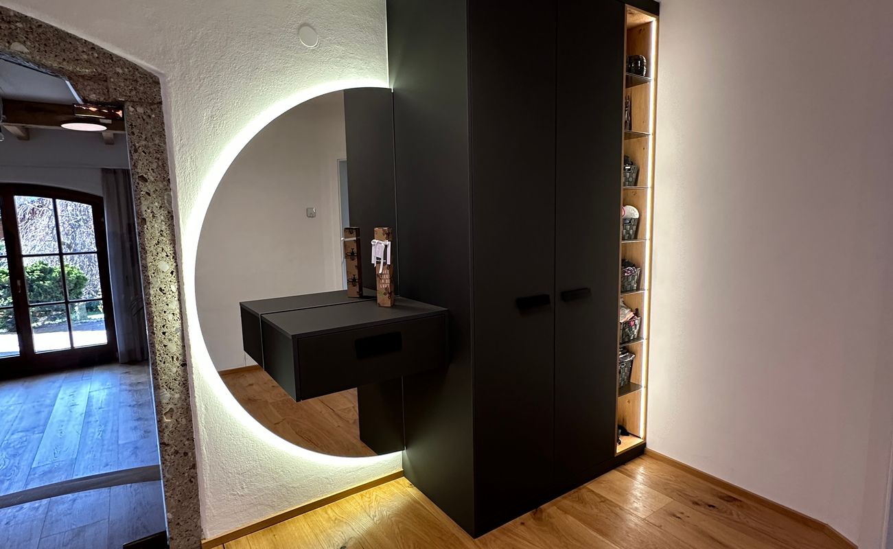 Der Eingangsbereich ist die Visitenkarte jedes Zuhauses. Eine durchdacht geplante Garderobe sorgt für Ordnung, Stil und einen einladenden ersten Eindruck. Erst recht wenn Funktionalität mit eleganten Details kombiniert wird.