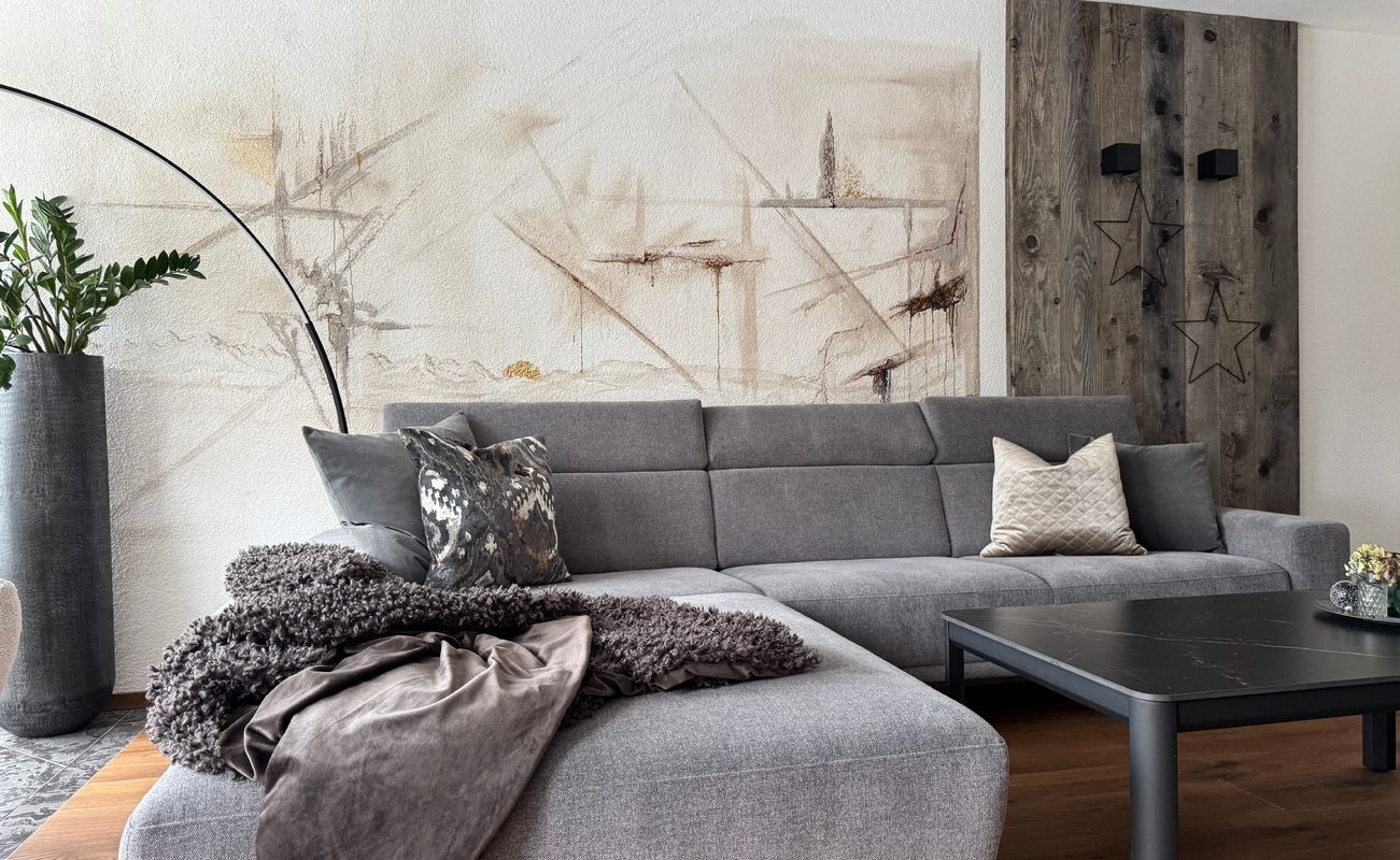 Wenn sanfte Farben und Freude an modernem Design auf viel Kreativität seitens unserer Kunden treffen, entsteht ein Wohnstil, der stimmig und gemütlich zugleich ist. Das neu renovierte Wohnzimmer ist jedenfalls unbestritten der Lieblingsraum der ganzen Familie!