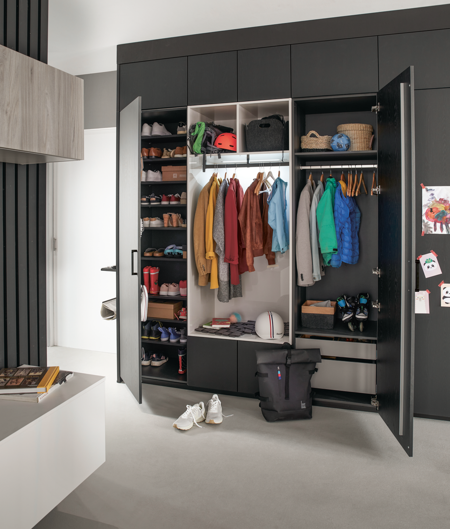 Profi-Tipp von Möbelhändler Aichner Wohnen: Je nach Familiengröße sollte im Vorzimmer jeder Bewohner*in Platz für seine, Schuhe, Jacken und alles Weitere haben. Dazu kommen Handtaschen, Schlüssel und kleinere Accessoires. Wieviel Platzbedarf besteht daher? Wir alle wissen, dass es von Stauraum nie genug geben kann. Dementsprechend ist es wichtig, raumsparend zu planen, damit alle Ressourcen optimal genutzt werden.